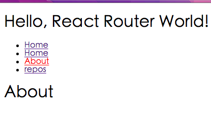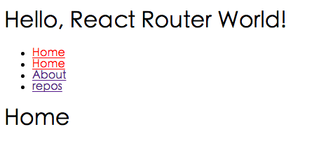 Now navigate around. Notice anything weird? The link to Home is always active! As we learned earlier, parent routes are active when child routes are active. Unfortunately, / is the parent of everything.